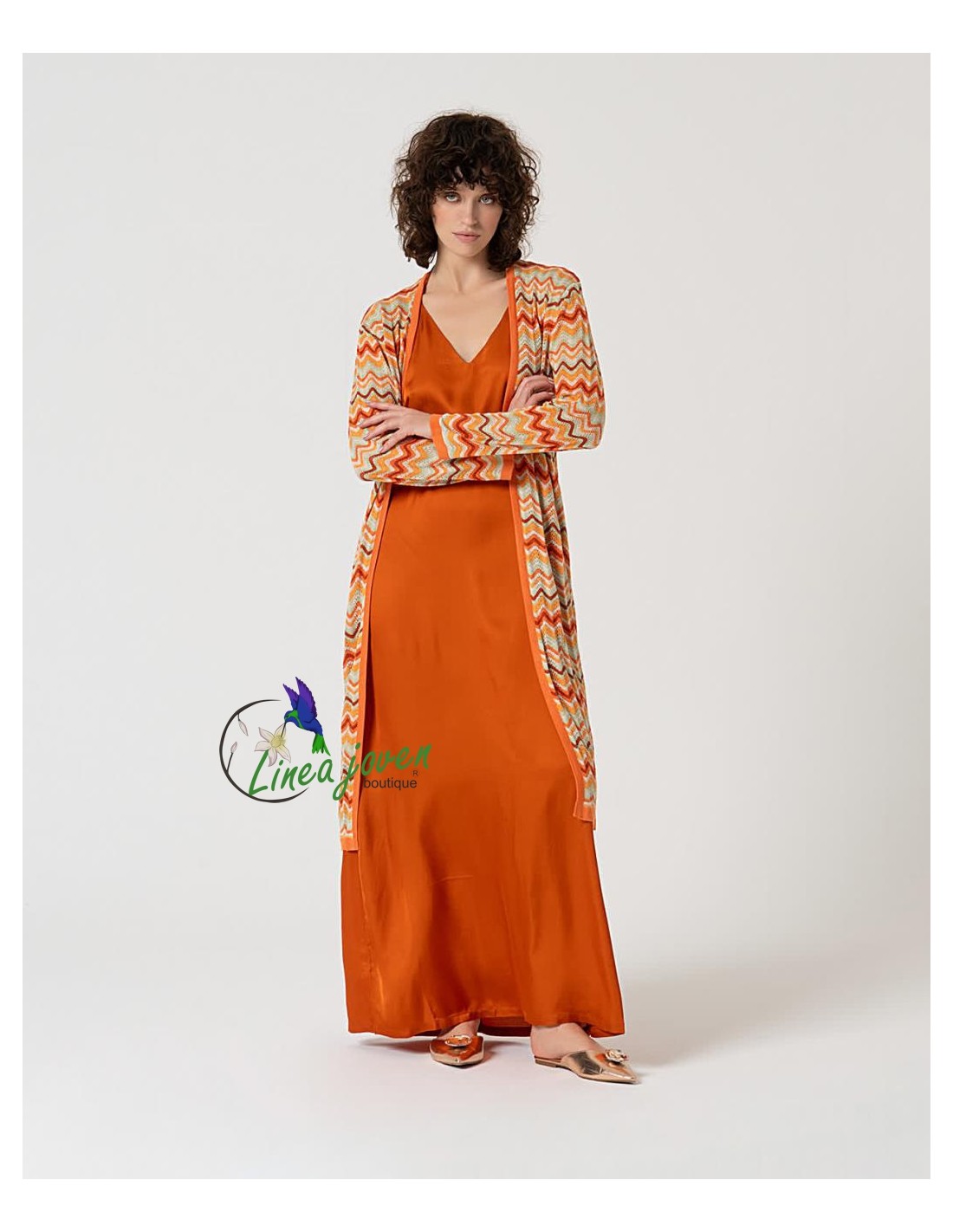 Cárdigan tricot abierto largo a rodilla con manga larga