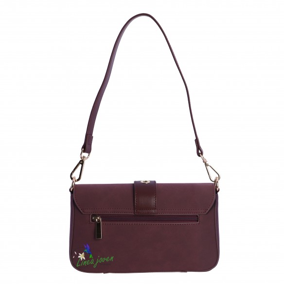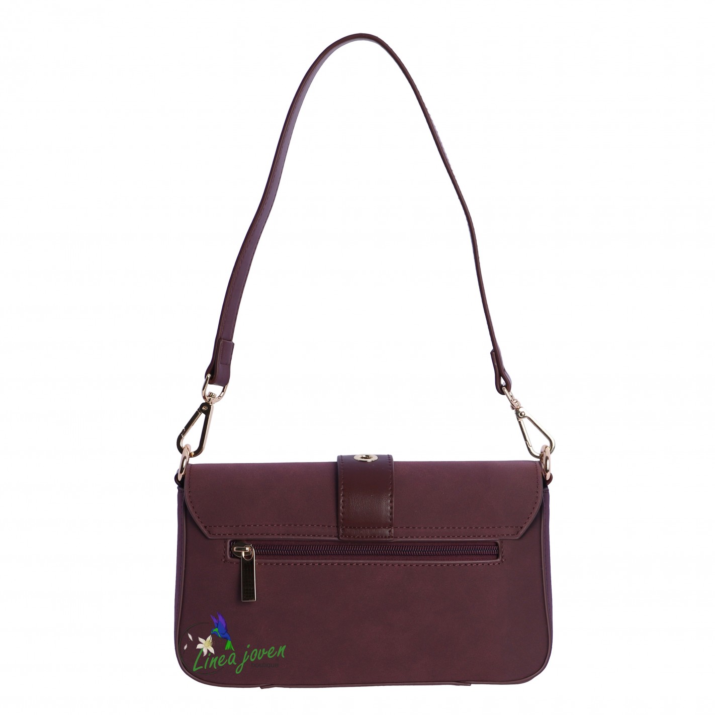 Bolso burdeos piel sintética, para hombro, incluye asa bandolera ajustable y extraible. 25 x 7 x 15 cm