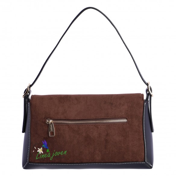 Bolso Marrón Negro antelina piel sintética, 27 x 17 x 9 cm