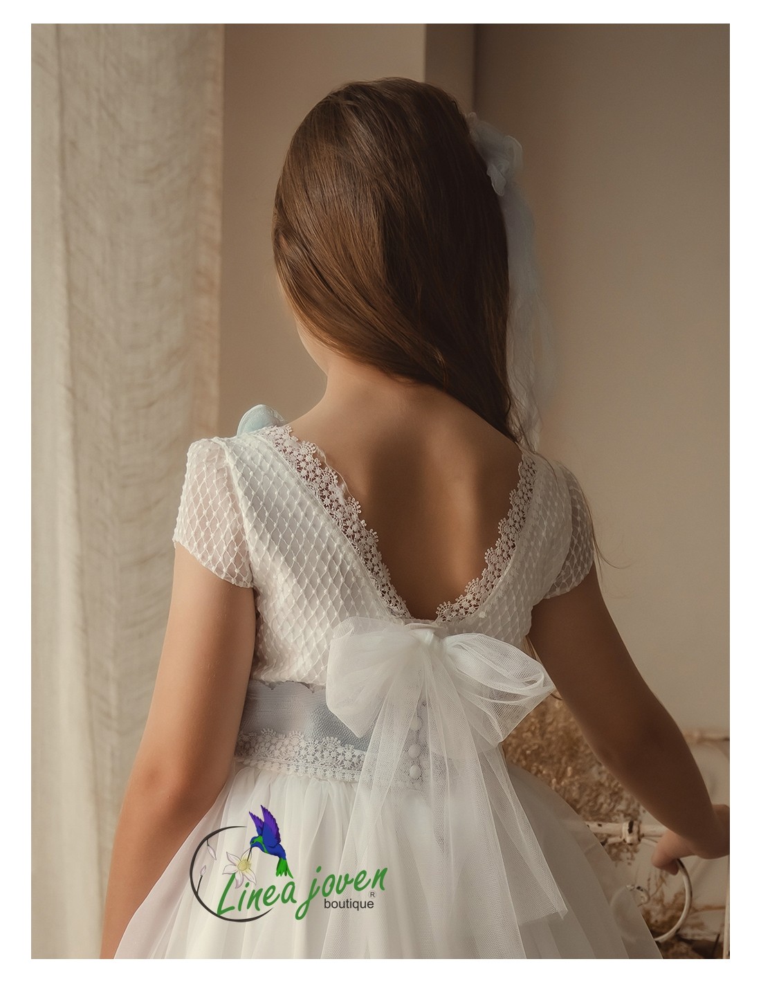 Vestido de comunión topitos azul