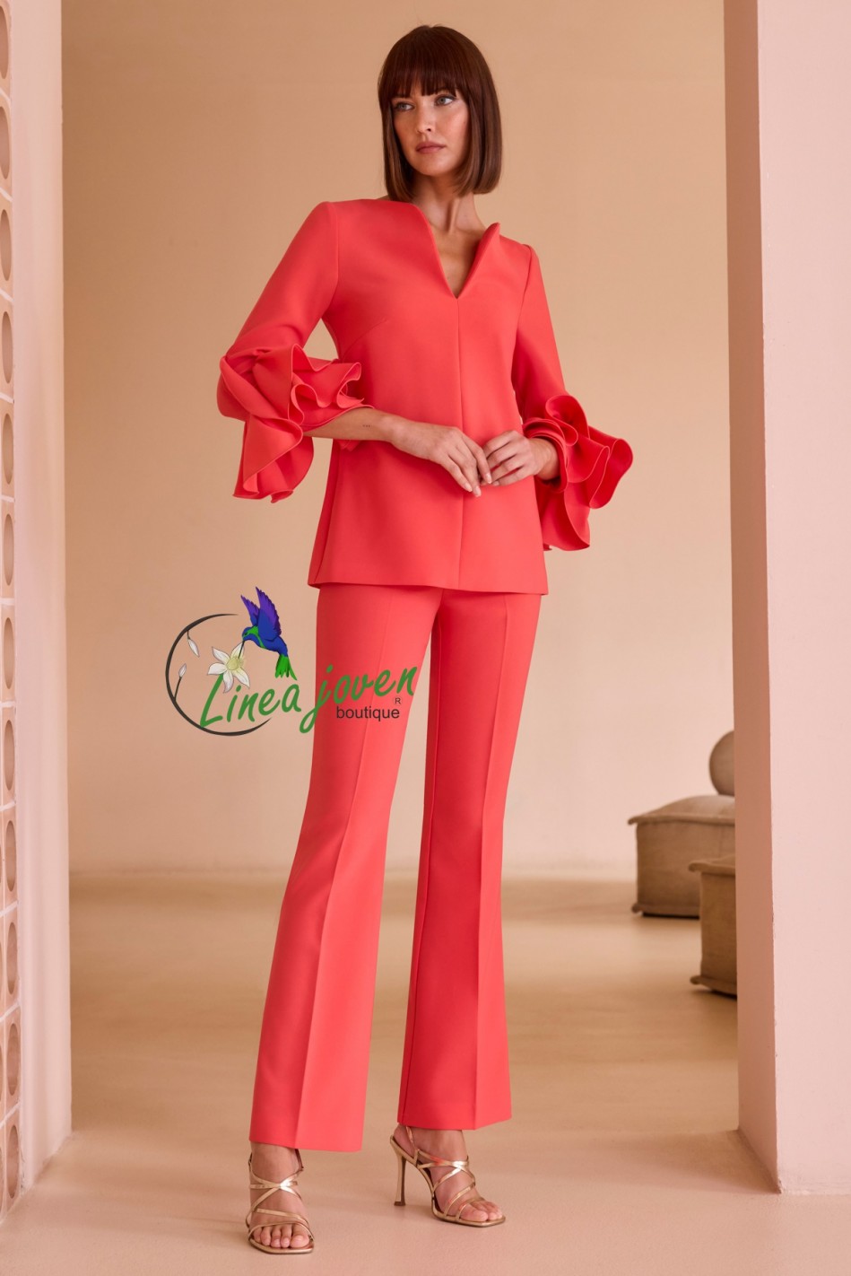 Conjunto de fiesta rojo mangas con volantes escote pico cuello abierto