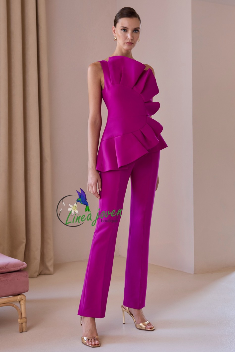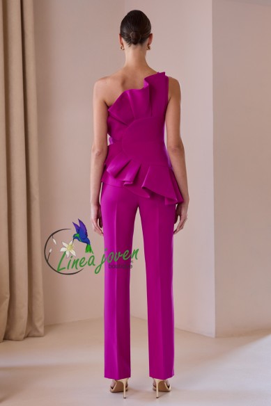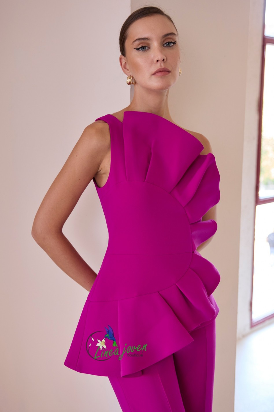 Conjunto de fiesta fucsia cascada péplum asimétrico