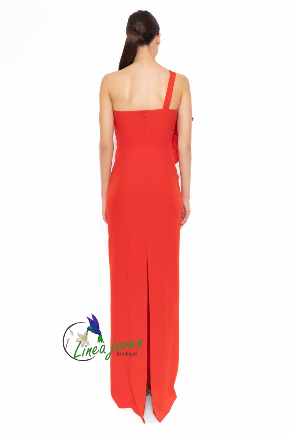 Vestido de fiesta rojo detalle floral sin mangas