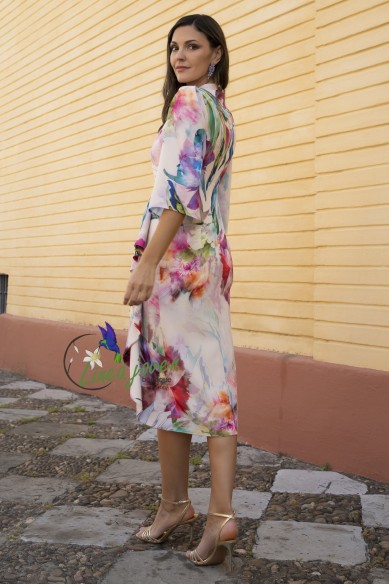 Vestido de fiesta floral escote cruzado y volantes en cascada